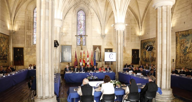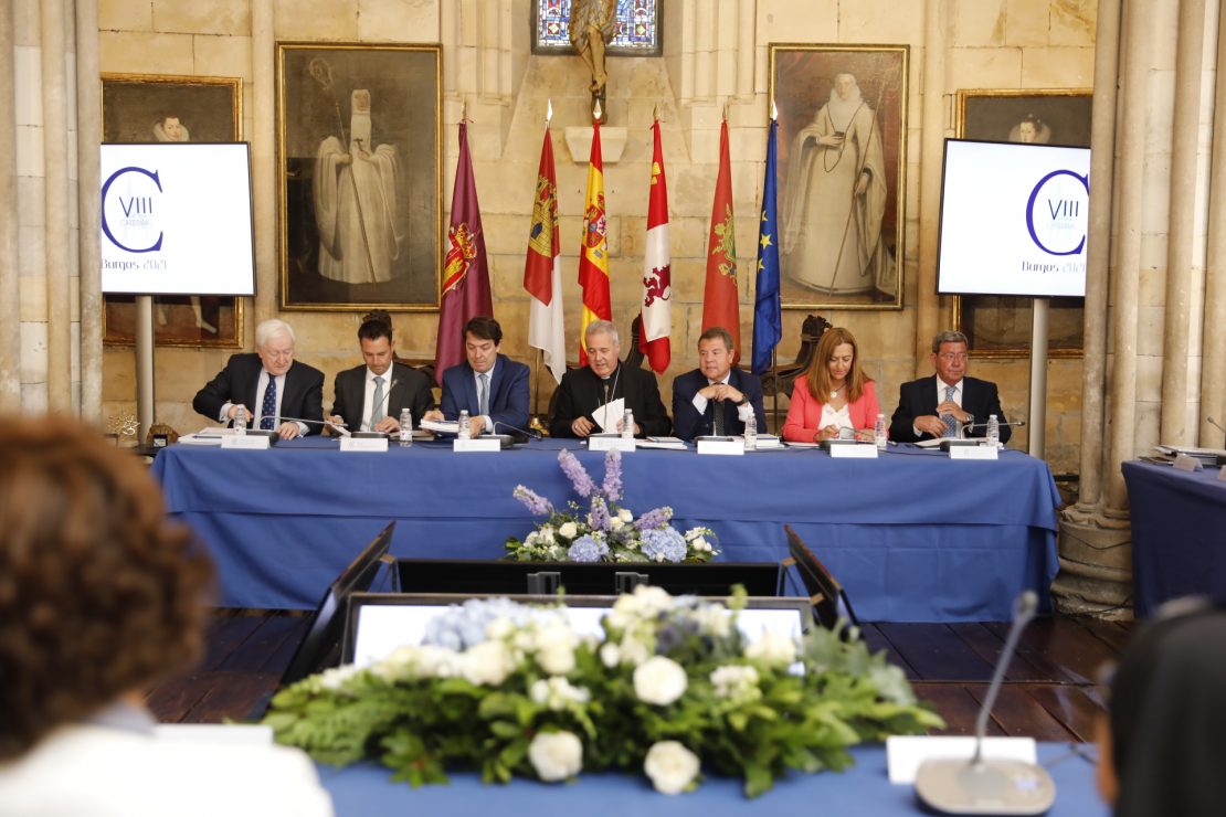 El Patronato de la Fundación VIII Centenario de la Catedral. Burgos 2021 se ha reunido esta mañana en la sala capitular del monasterio de las Huelgas, en Burgos, para perfilar las actividades que esta entidad realizará en la segunda mitad de este año con motivo de los 800 años de la Seo castellana, que abarcará más de 60 fechas. A este encuentro han acudido el presidente de la Junta de Castilla y León, Alfonso Fernández Mañueco; su homólogo de Castilla-La Mancha, Emiliano García Page; la delegada del Gobierno en Castilla y León, Virginia Barcones; los consejeros de Cultura, Gonzalo Santonja, y de Sanidad de la Junta de Castilla y León, Alejandro Vázquez; la delegada de Patrimonio Nacional para los Reales Patronatos, Elvira Prado; la abadesa de Las Huelgas y los abades de Santo Domingo de Silos y San Pedro Cardeña.